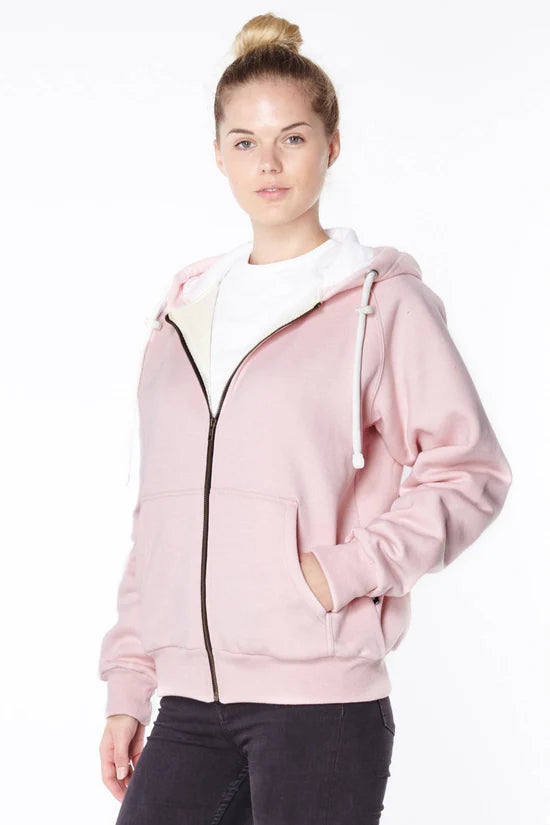 Stylish practicality: A feminine pink hoodie that doesn’t compromise on look or profile.